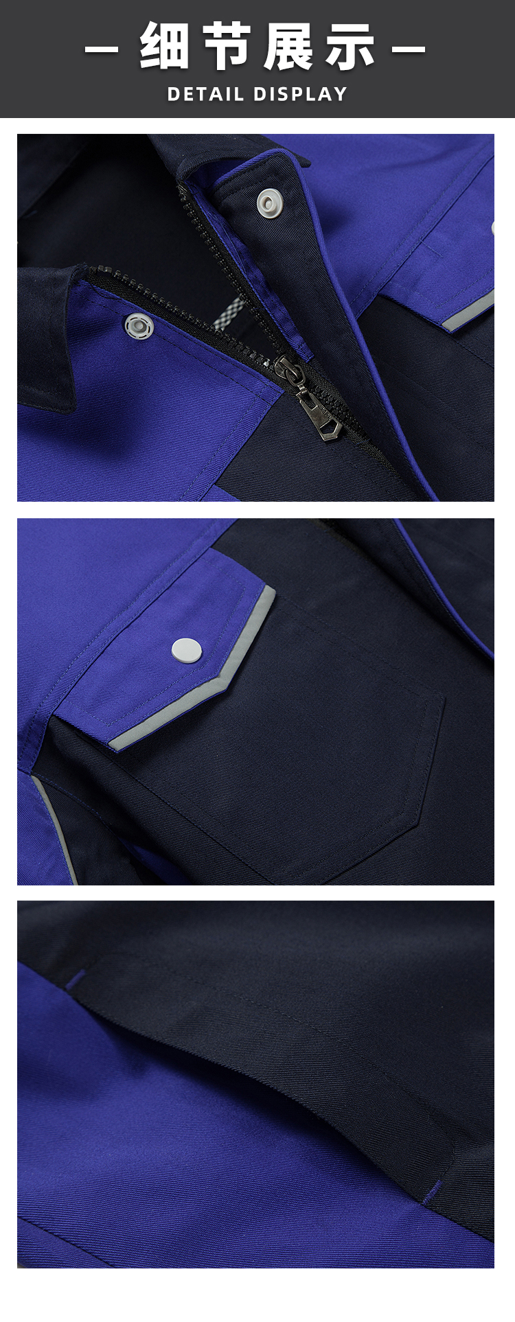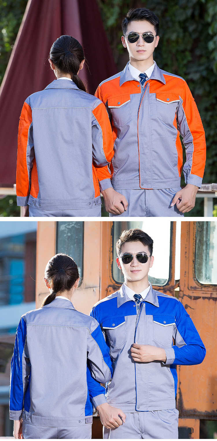 秋冬工作服定制,全工藝滌棉厚紗卡拼色長(zhǎng)袖工裝外套20.0%棉 80.0%聚酯纖維(滌綸)